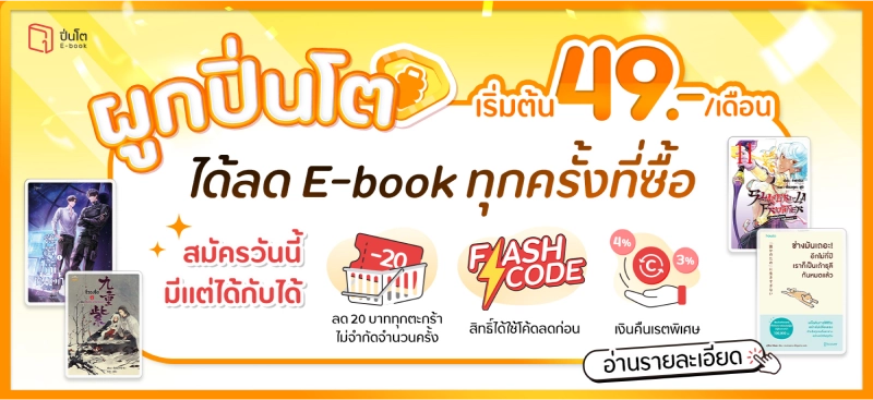 ใครจะเปย์ E-book แนะนำให้ผูกปิ่นโตไว้เลย สมัครตอนนี้คุ้มทันที >